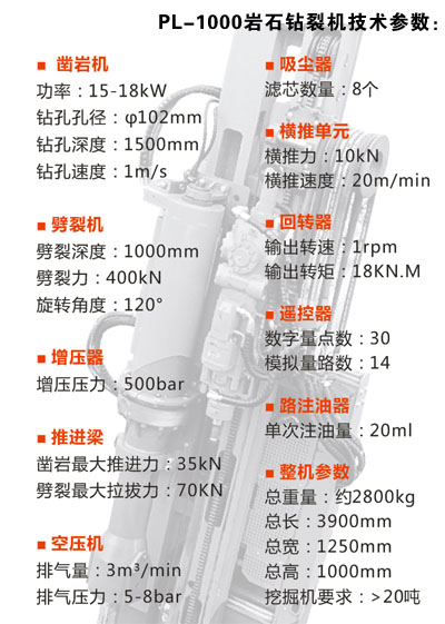 目前烈?guī)r科技有限公司生產(chǎn)的巖石鉆裂一體機已經(jīng)研發(fā)升級到第四代,PL1000型適配挖掘機噸位,25噸~38噸,日產(chǎn)噸位約1000噸;PL2000型適用挖掘機噸位:48噸~60噸,日產(chǎn)噸位約2000噸.