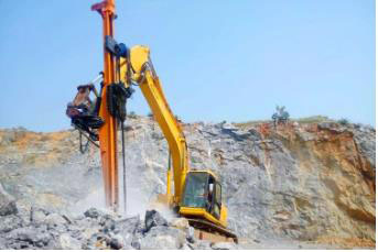 全液壓挖改鉆優勢:無需更改油路系統,利用液壓分配閥,能實現挖掘機和鉆機之間的轉換,不影響挖掘機的本身性能,間接地實現了一機多用,可以進行挖土、鉆孔、鑿巖等作業,從而使挖機鉆機快捷易換,快接快插。使用自動化液壓系統,使鉆孔在巖石上的速度遇硬則慢、遇軟則快,實現液壓鉆孔軟著陸,實現鉆孔智能化,減少機械變速的故障率。鉆孔性能良好,能實現不同地層條件下的鉆孔作業,即使在復雜地層鉆孔也有很好的鉆進能力。作業半徑大且靈活自如,大臂的伸展和挖掘機的360°無死角旋轉使其更加靈活。