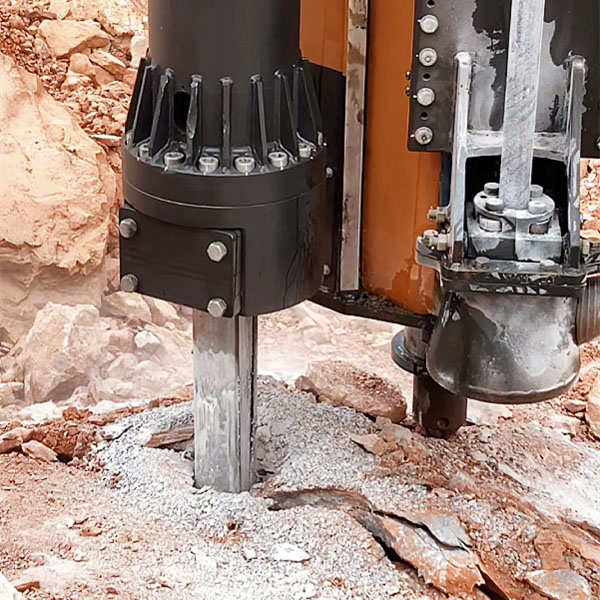 本設(shè)備搭載在(24T-36T)的挖掘機(jī)上使用,用于各種硬巖石方開采工程,解決硬巖高效環(huán)保開采方案。充分利用其動力和超強(qiáng)的機(jī)動性,能適用各種戶外復(fù)雜工況,獨(dú)創(chuàng)L型三角擺動鉸接結(jié)構(gòu),結(jié)構(gòu)穩(wěn)定 耐用,可以適應(yīng)于各種角度施工,拆裝方便便于運(yùn)輸,背裝式 電路及液壓系統(tǒng)方便檢修維護(hù)等特點(diǎn)。本設(shè)備采用多通路高可靠性的無線遙控器進(jìn)行操作。利用22KW液壓鑿巖機(jī),先進(jìn)行巖石鉆孔, 再使用P240兩級增壓超強(qiáng)劈裂機(jī)入孔劈裂 ,從而達(dá)到高效巖石靜態(tài)爆破的效果。